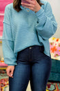 PREORDER! ETA 10/29 Plus Size Cool & Cozy Light Blue Textured Knit Top **SHIPPING EXPECTED TO BEGIN ON DATE 10/29**