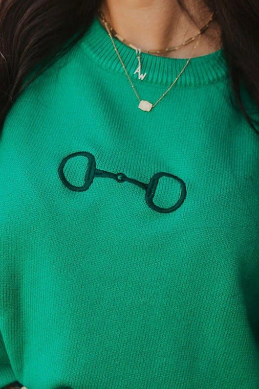 PREORDER! ETA 11/24 Riding High Bright Green Horse Bit Short Sleeve Sweater **SHIPPING EXPECTED TO BEGIN ON DATE 11/24**