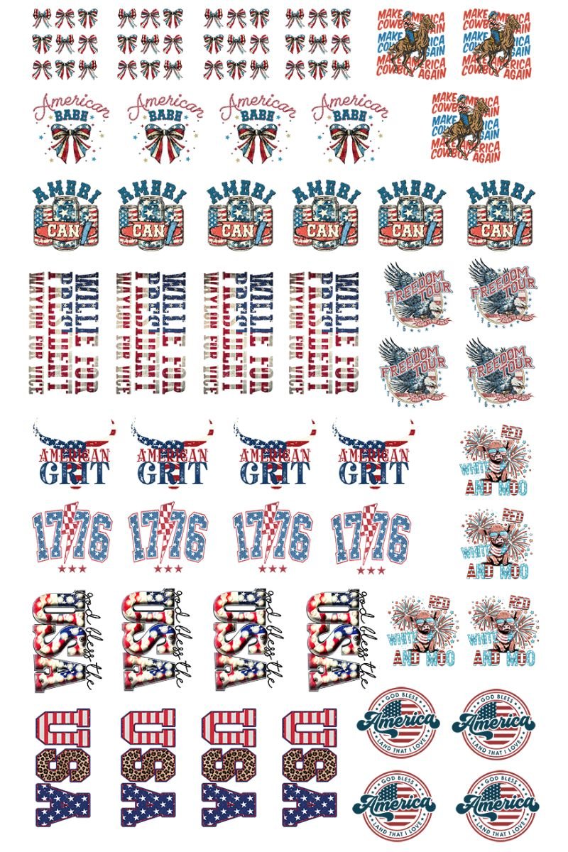 - Quantity of Designs on Gang Sheet Varies Depending on Size and Shape of Each Design