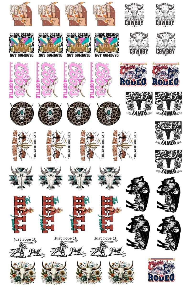 - Quantity of Designs on Gang Sheet Varies Depending on Size and Shape of Each Design