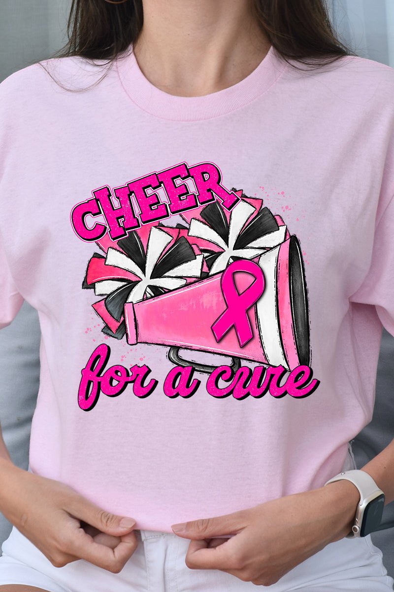 Cheer For A Cure Pink Ribbon Short Sleeve Relaxed Fit T-Shirt