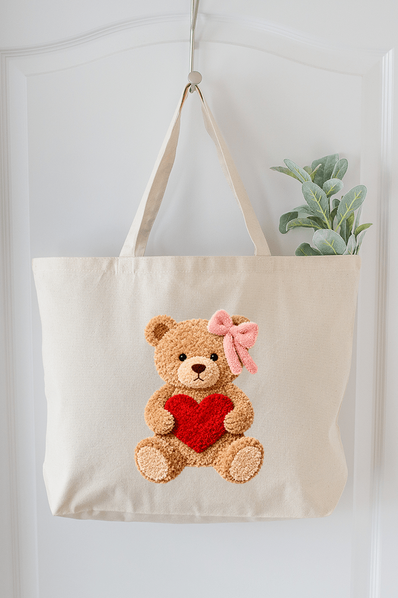 Cozy Heart Cub Faux Yarn Canvas Jumbo Tote