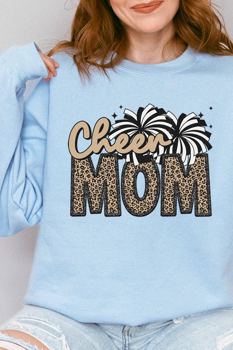 Faux Embroidery Cheer Mom Heavy-weight Crew Sweatshirt