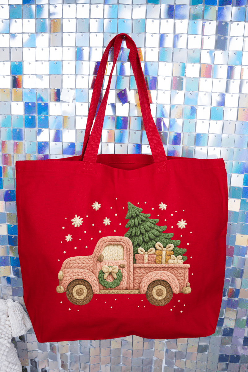 Faux Yarn Holly Jolly Haul Canvas Jumbo Tote