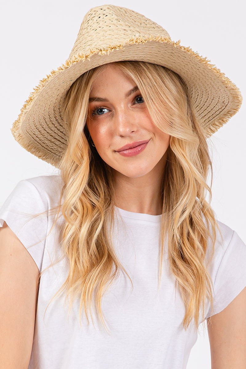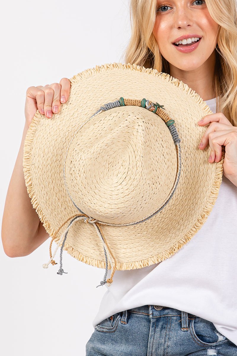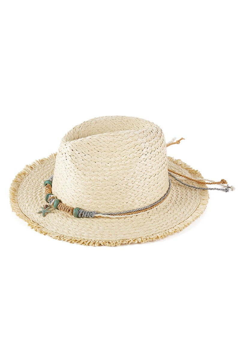 Pelican Bay Starfish Beige Frayed Straw Hat