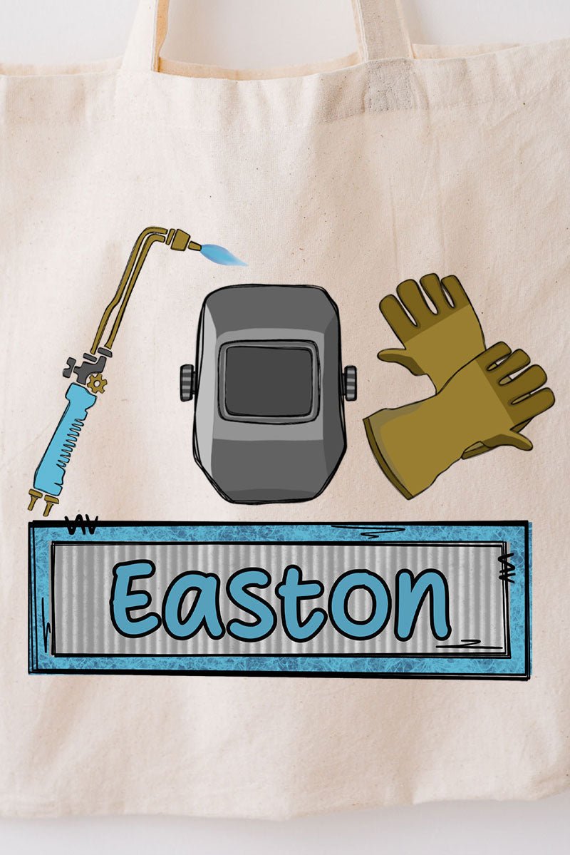 Personalized Blue Mini Metal Maker Small Canvas Tote *Personalize Your Name
