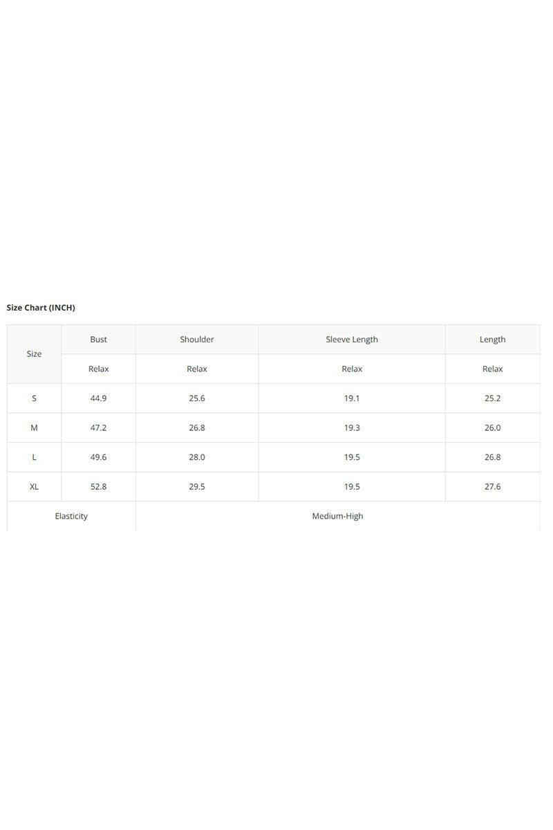 - Approx. Manufacturer's Measurements for Small: Bust: 44.9" x Shoulder: 25.6" x Sleeve Length: 19.1" x Length: 25.2"