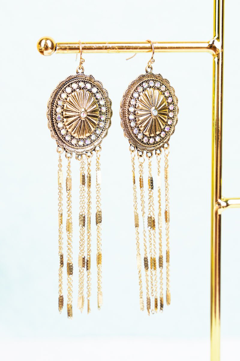 25% OFF! Show Stopper Iridescent Crystal Goldtone Fringe Earrings