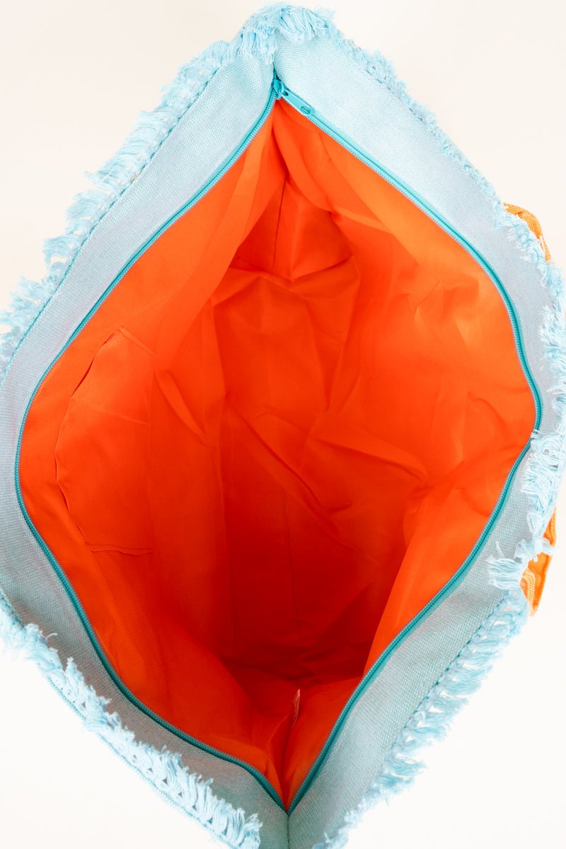 Celebrate summer with this fun two-color rope text shoulder tote! This spacious bag will haul all your gear no matter where the day takes you!