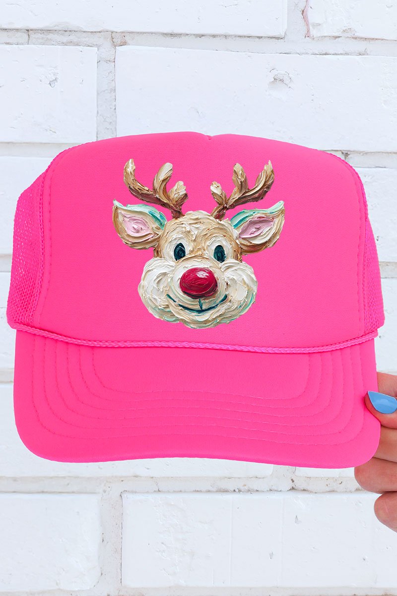The Colorful Painted Reindeer Otto Neon Pink Foam Front Trucker Hat
